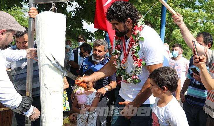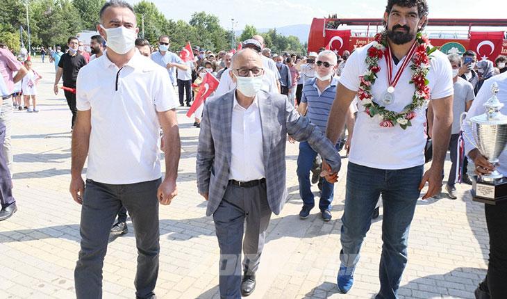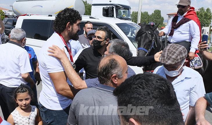 Başpehlivanlık güreşlerinin finalinde rakibi Ali Gürbüz'e yenilerek ikinci olan Koç, memleketi Beyşehir'de coşkuyla karşılandı.