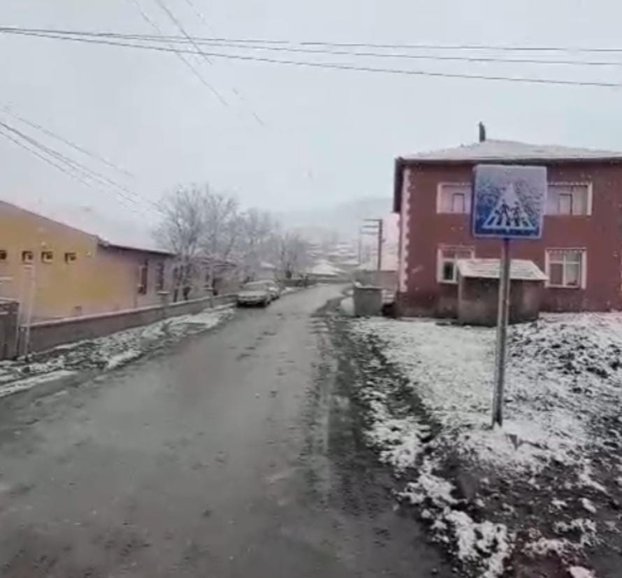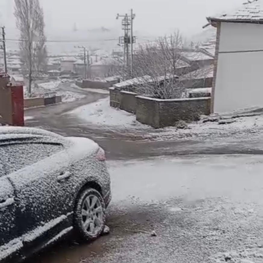 Konya'nın bir ilçesinde hava sıcaklıkları düştü. İlçe merkezinde yüksek kesimlerde başlayan kar yağışı çevreyi beyaza bürüdü.