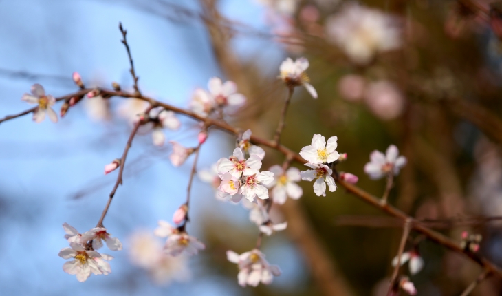 Kırklareli'nde hava sıcaklığının mevsim normallerinin üzerinde seyretmesi nedeniyle bazı badem ağaçları çiçek açtı.