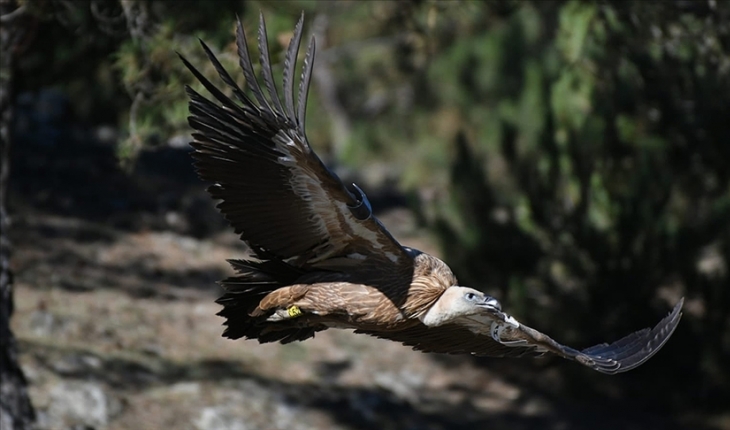 İsrail'de halkalanan kızıl akbaba, Afyonkarahisar'ın Sandıklı ilçesindeki Akdağ Yaban Hayatı Geliştirme Sahası'nda görüldü.