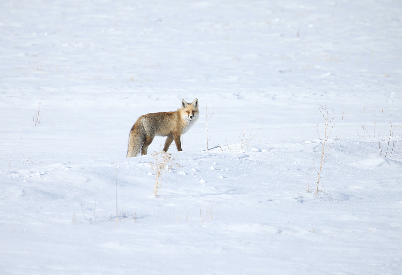 Kars'ın Selim ilçesinde, kızıl tilkilerin karla kaplı arazideki av mesaisi görüntülendi.