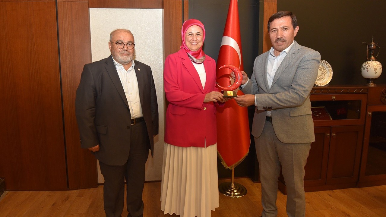Türk Kızılay Genel Başkanı Prof. Dr. Fatma Meriç Yılmaz ve Türk Kızılay Konya Şubesi Başkanı Hüseyin Üzülmez, Karatay Belediye Başkanı Hasan Kılca’yı ziyaret etti.
