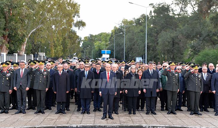 Törene, KKTC Cumhurbaşkanı Ersin Tatar, KKTC Cumhuriyet Meclisi Başkanı Zorlu Töre, Başbakan Ünal Üstel, Yüksek Mahkeme Başkanı Narin Ferdi Şefik, KKTC 2. Cumhurbaşkanı Mehmet Ali Talat, Türkiye'nin Lefkoşa Büyükelçisi Metin Feyzioğlu, Kıbrıs Türk Barış Kuvvetleri Komutanı Tümgeneral Sezai Öztürk, Güvenlik Kuvvetleri Komutanı Tümgeneral Zorlu Topaloğlu, bakanlar, milletvekilleri, belediye başkanları, siyasi parti başkanları, askeri erkan, muharip dernekler ve diğer yetkililer katıldı.Çelenklerin anıta sunumuyla başlayan tören, saygı duruşu, saygı atışı ve İstiklal Marşı eşliğinde bayrakların göndere çekilmesiyle sürdü.