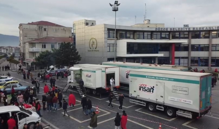 Kocaeli Büyükşehir Belediyesi, Düzce'de 5,9 büyüklüğündeki depremin ardından bölgeye iki mobil yardım tırı gönderdi.