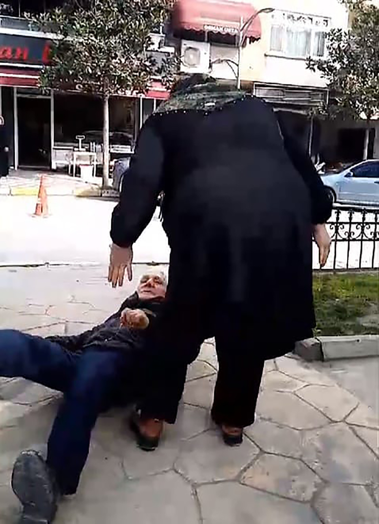 Sakarya'nın Pamukova ilçesinde, 2 ay önce eşini kaybeden Nuran K. (54), evinin çevresinde dolaşan ve kendisini telefonla arayıp rahatsız eden erkeği parkta dövdü. O anlar bir vatandaş tarafından cep telefonuyla görüntülendi.
