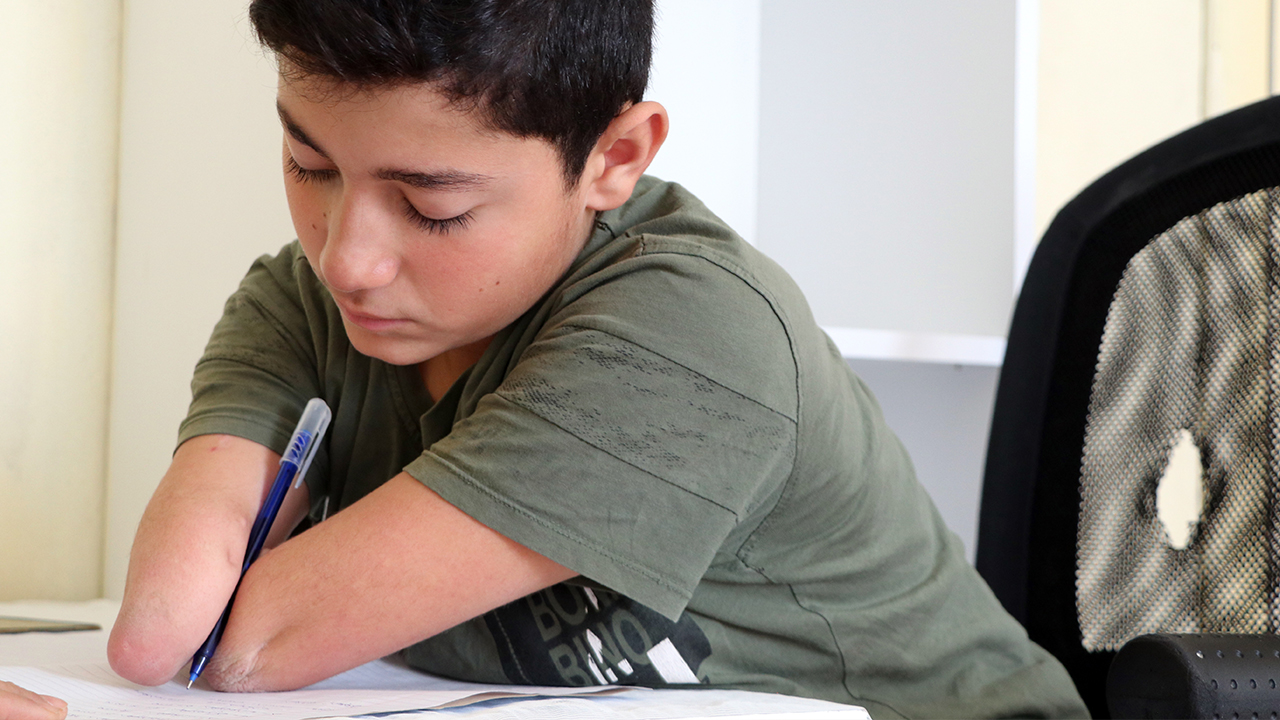 Öğretmenleriyle ilk dersi yapmanın mutluluğunu yaşayan Nakşin Özdemir ise "Öğretmenimle ilk derse başladım. Çok heyecanlıyım. Geçen yıl aldığım protez kol ve bacaklar bana küçük gelince zorlanıyorum. Şu an kullanamıyorum. Yeni protez almamız gerekiyor. Bunun için de destek bekliyorum" diye konuştu.