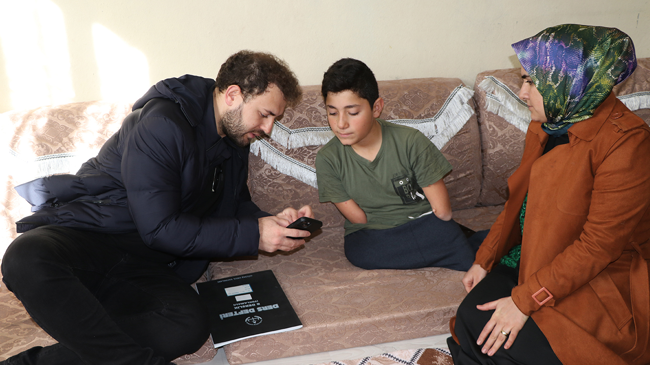 Bu yıl lise eğitimine başlayan Özdemir'i, okulun Psikolojik Danışmanlık Öğretmeni Osman Zengin, Türk Dili Edebiyat Öğretmeni Benazir Kaya ile Coğrafya Öğretmeni Seyithan Keskin, evinde ziyaret ederek ders kitaplarını verdi.