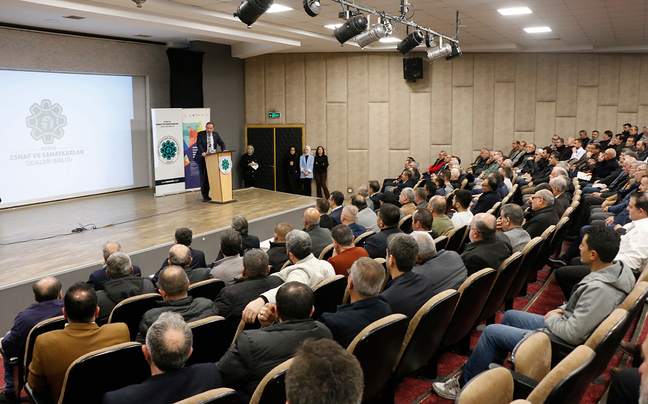 Konya Esnaf ve Sanatkârlar Odaları Birliği konferans salonunda düzenlenen istişare ve değerlendirme toplantısına, Ticaret İl Müdürü Mustafa Çağlayan, İŞKUR İl Müdürü Emrah Keleş, Sanayi ve Teknoloji İl Müdürü Vehbi Konarlı, Tarım ve Orman İl Müdürü Duran Seçen, KOSGEB İl Müdürü İsmail Özdemir, Milli Eğitim Müdür Yardımcısı Tayyip Sarı katıldı.