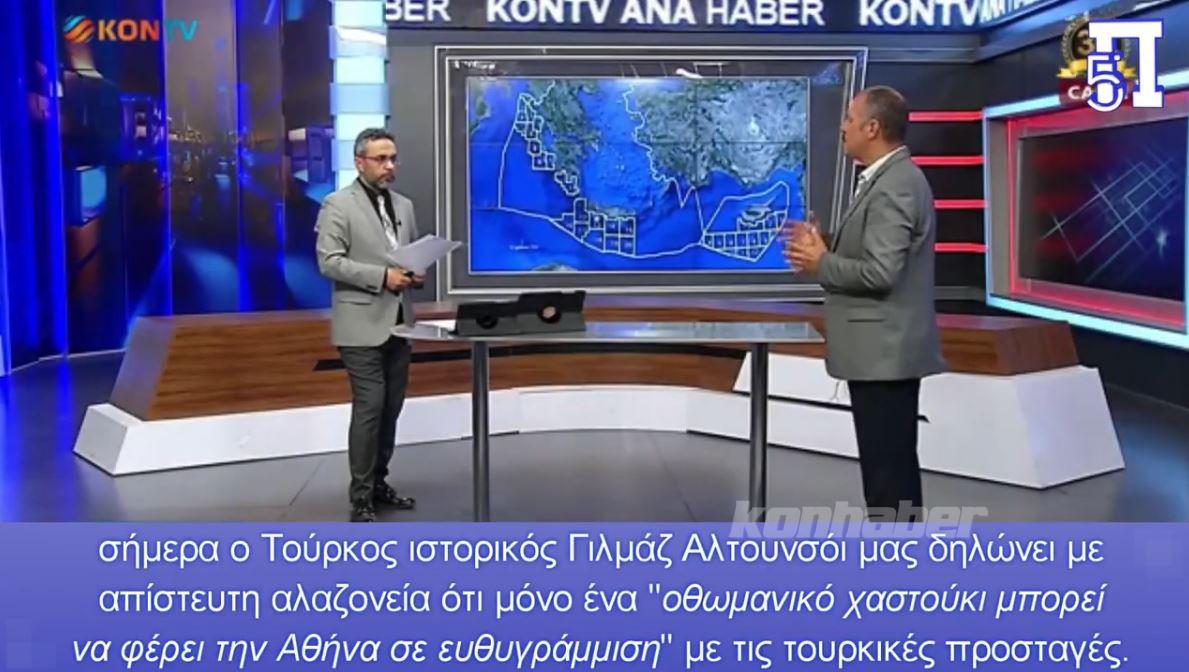 KONTV Haberin Türkiye’nin haklı tezlerini savunması ve Yunanistan’ın sürekli Ege’de gerilimi tırmandıran taraf olduğuna vurgu yapması Yunan medyasında geniş yer buldu. Tarihçi yazar Yılmaz Altınsoy’un konuk olduğu KONTV Ana Haber bülteninde Türkiye – Yunanistan gerilimi konuşulmuş ve Altınsoy önemli tespitlerde bulunmuştu.