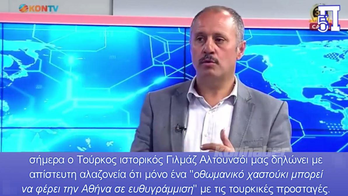 Yunan Pentapostagma haber kanalı, KONTV Ana Habere konuk olarak katılan Yılmaz Altunsoy’un sözlerini alarak “Türk Uzman Tarihçi Yunanistan’ı küstahça Osmanlı tokadı ile uyardı” ifadesini kullandı. Yunan haber kanalı “Altunsoy’un “500 sene bir vali ile yönettiğimiz Yunanistan şimdi bize meydan okuma cüretini gösteriyor” ifadelerini alıntıladı. Altunsoy’un KONTV haberde ki ifadelerini küstahlık olarak değerlendiren yunan haber kanalı, Altunsoy’un “Yunan hududunun acilen değişmesi gerekiyor” sözlerini ön plana çıkararak rahatsızlığı açıkça dile getirdi.