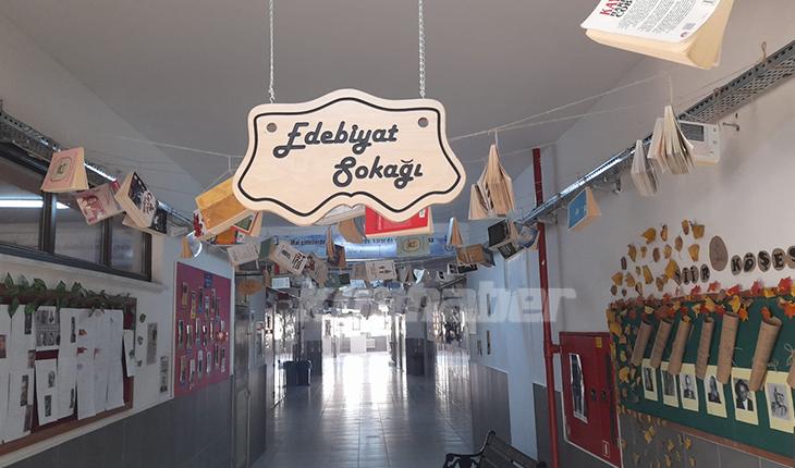 Daha sonra Arıcı ve Aktaş’a plâketleri takdim edildi. Okulu gezen Arıcı ve Aktaş özellikle okulun giriş koridorunda Türk Dili ve Edebiyat Öğretmenleri Hilal Şimşek Eğer ve Ayşegül Soycan tarafından oluşturulan Edebiyat Sokağı’na hayran kaldı.