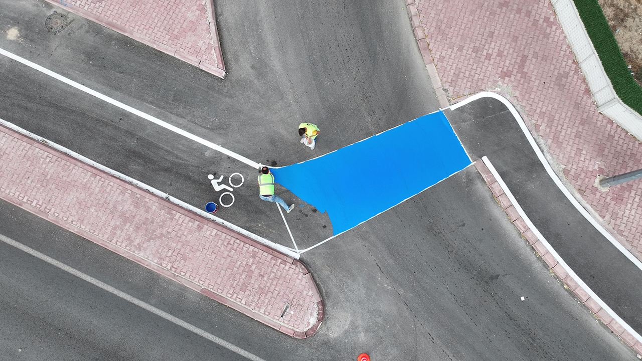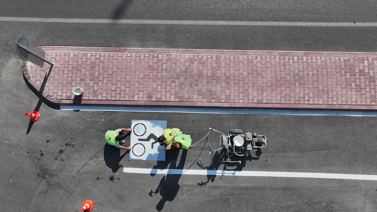 Konya Büyükşehir Belediyesi’nin bisiklet yollarında yaptığı çalışmalar kapsamında beyaz şerit çizgisi, bisiklet figürü ve kavşak geçişleri için mavi çift kompenant bisiklet yolu zemin kaplama uygulamaları yapılıyor. Çalışmalar vesilesiyle bisiklet yollarının yatay işaretlemelerindeki eksikler giderilerek hem bisiklet kullanıcılarının güvenliği artırılıyor hem de farkındalık oluşturuluyor.