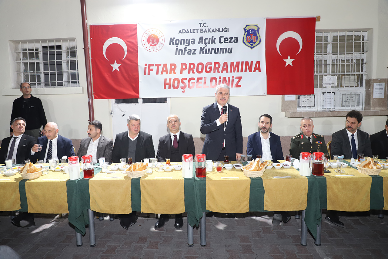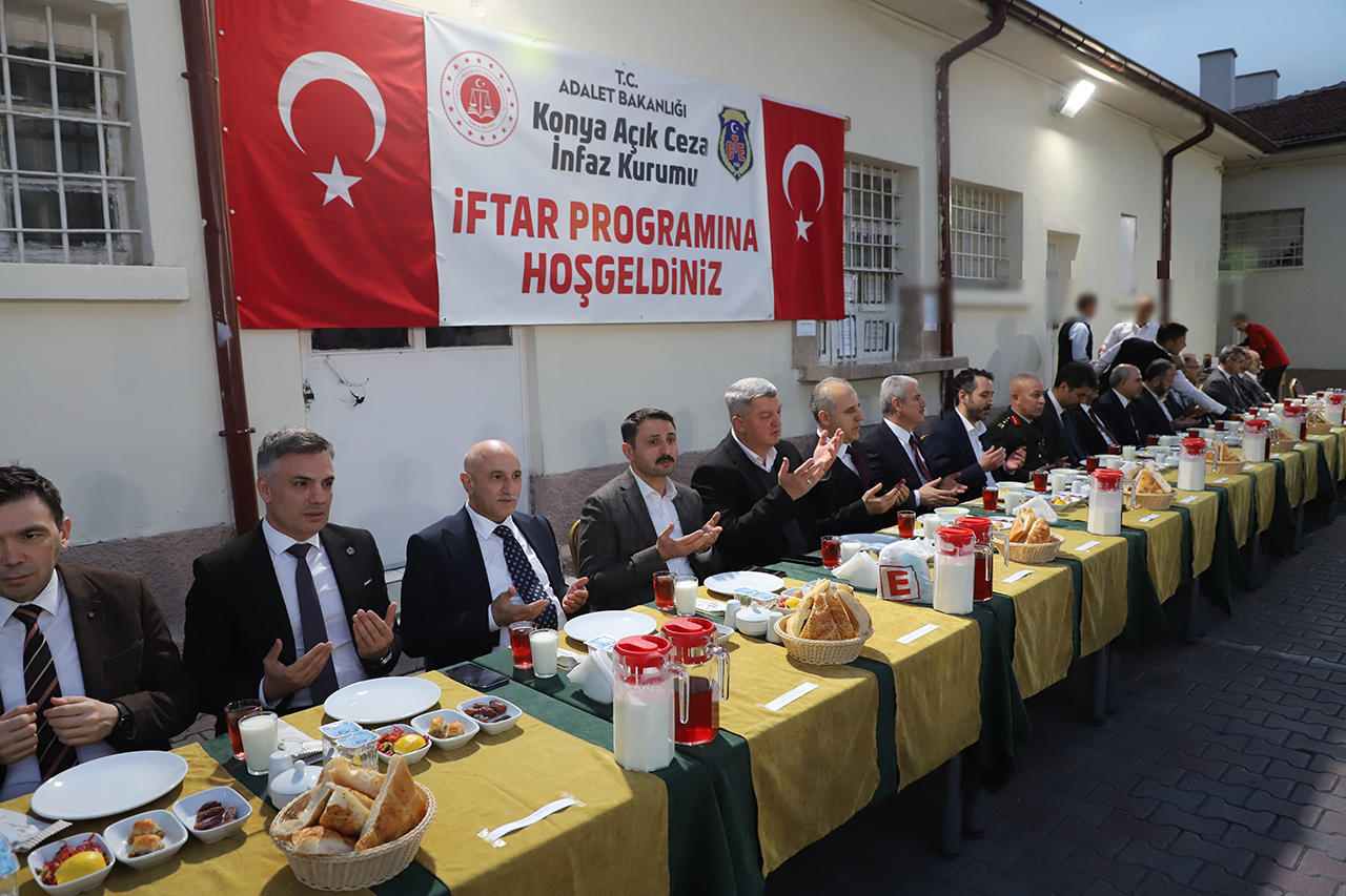 Konya Cumhuriyet Başsavcılığı'nın öncülüğünde, Konya Açık Ceza İnfaz Kurumu'nda protokol üyeleri, personel ve hükümlülerin katılımıyla bir iftar programı düzenlendi.