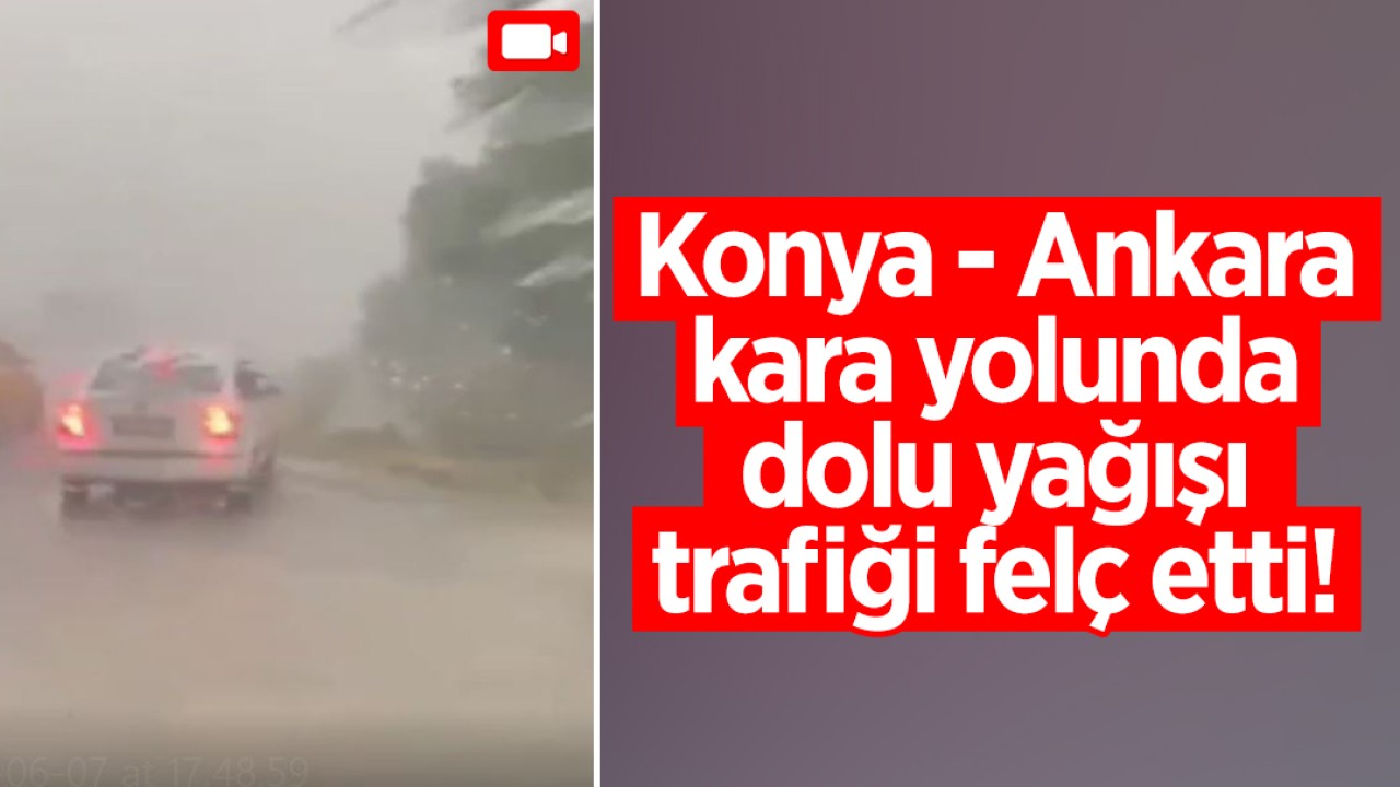 Konya-Ankara kara yolunda dolu yağışı etkili oldu. Şiddetli yağış nedeniyle trafik durma noktasına geldi.