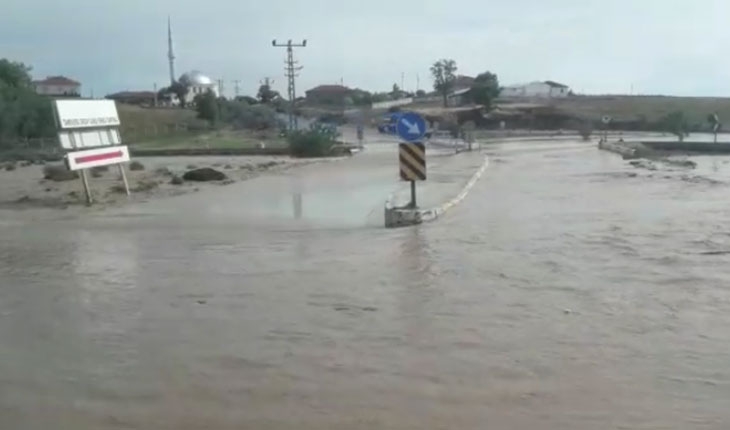 Konya'nın Kulu ilçesinde şiddetli yağış etkili oldu, Konya-Ankara kara yolu sele teslim oldu.