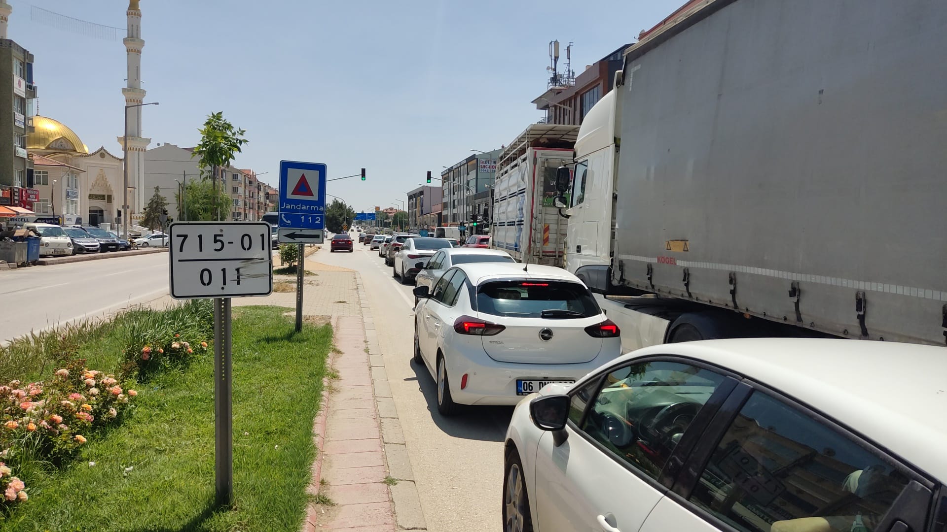 İlçede artarak devam eden yoğunluk nedeniyle araçlar zaman zaman düşük hızda ilerliyor.