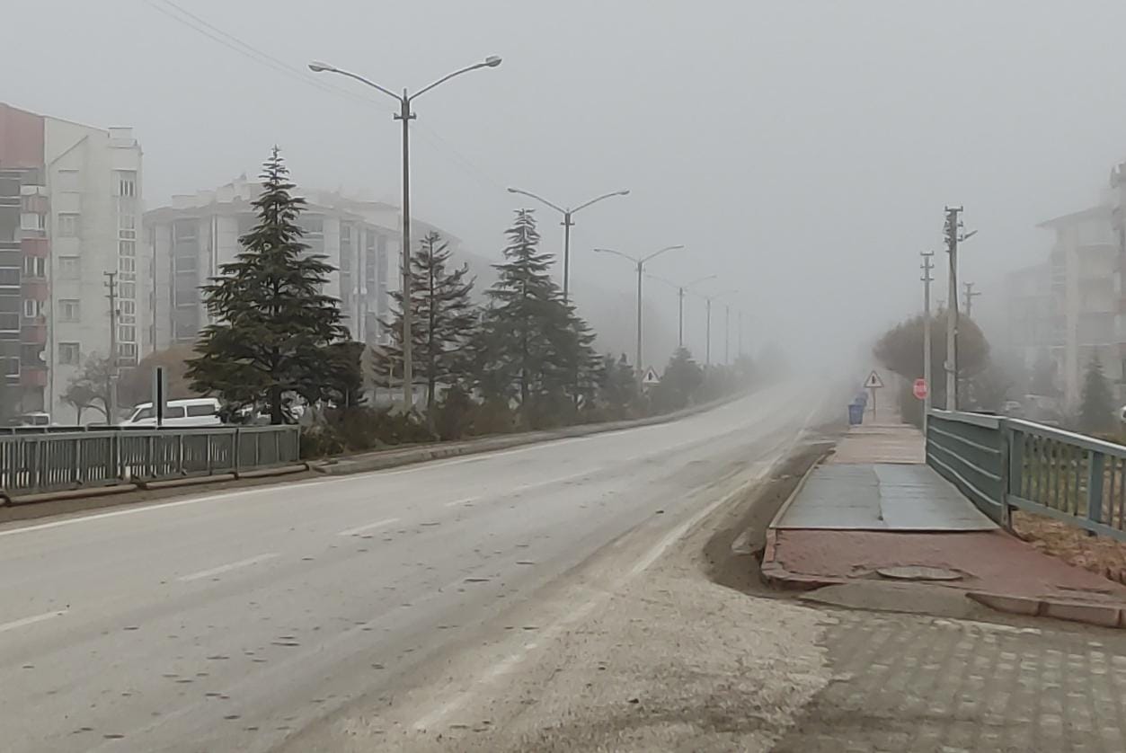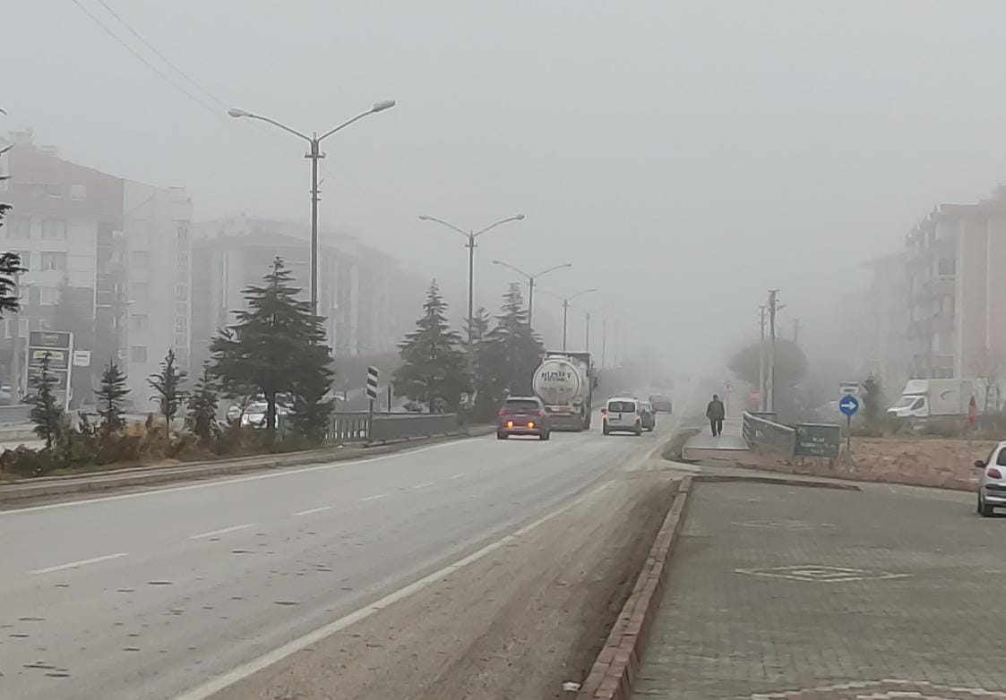 Yolda görüş mesafesi 40 metrelere kadar düştü. Gece saatlerinde etkisini daha da artıran sis, Konya-Ankara - Kırıkkale yolu ile birlikte Kulu ilçe merkezinde de görülüyor.