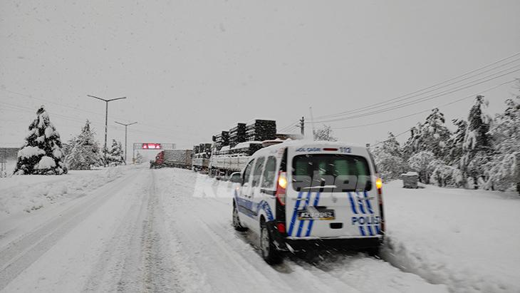 Trafik ekipleri, yolu kullanacak sürücüleri araçlarında zincir bulundurmaları konusunda uyarıyor.