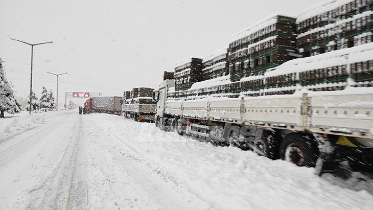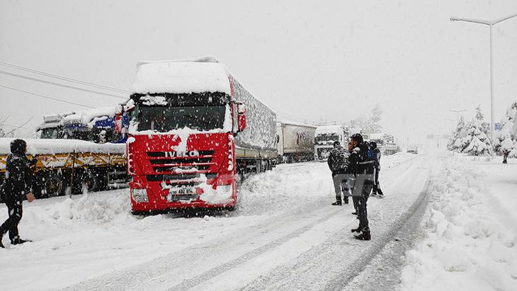 Kar kalınlığının 50 santimetreyi aştığı Alacabel'de ulaşım güçlükle sağlanırken, Seydişehir'den Antalya yönüne gidecek çekici türü araçların geçişine izin verilmiyor.
