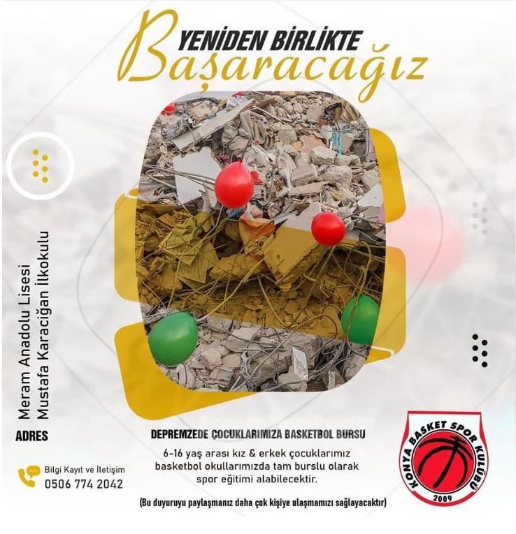 Deprem bölgesinden Konya’ya gelen çocuklar için özel bir çağrı yapıldı. Konya Basket Spor Kulübü, 6-16 yaş arası misafir çocuklara tam burslu olarak eğitim verecek.