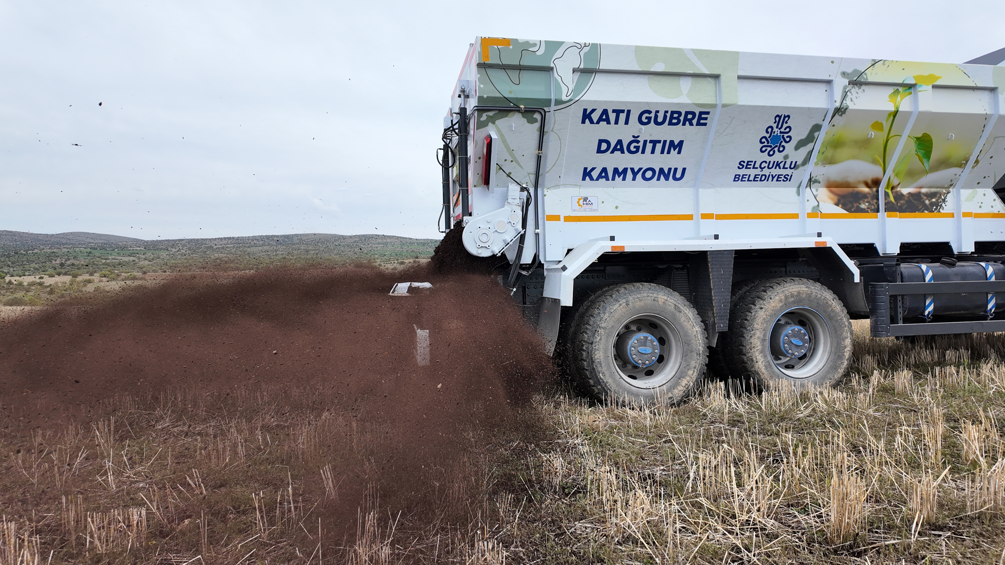 Selçuklu Belediyesi Kırsal Hizmetler Müdürlüğü tarafından başarıyla denenen “Kamyon Üzeri Gübre Dağıtım Makinesi” ile kullanılmayan gübreleri tarım arazileri ile buluşturmak, topraktaki organik madde miktarını artırıp kimyevi gübre kullanımını en aza indirmek hedefleniyor.