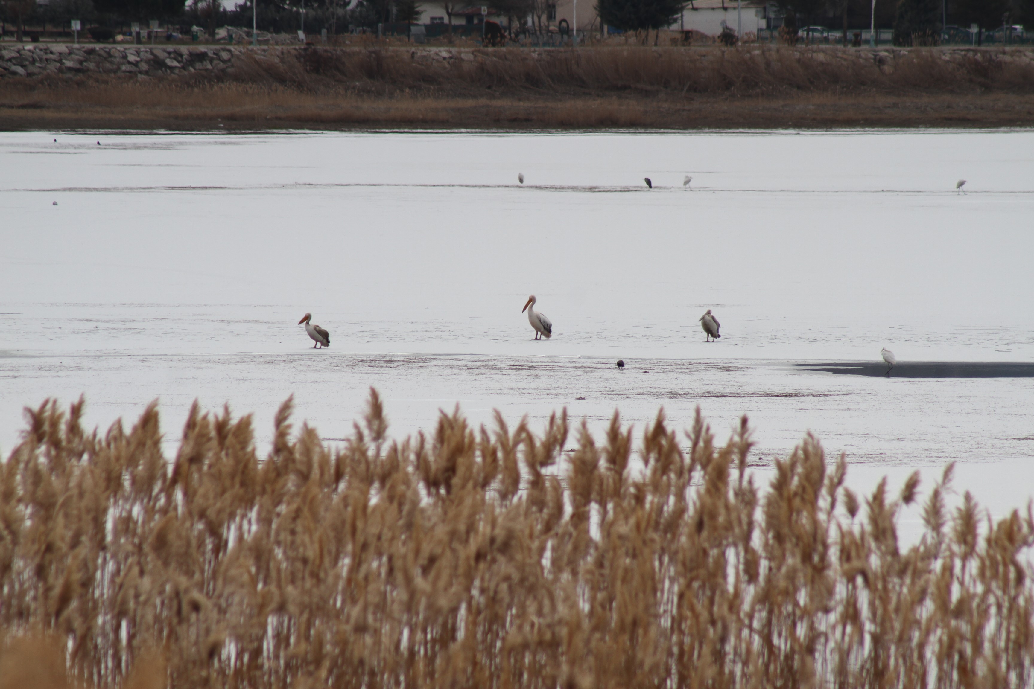 Zaman zaman hareketsiz bekleyen, zaman zaman da buz tabakası üzerinde peş peşe yürüyen pelikanlar; kimi anlarda gökyüzüne havalanarak yer değiştirdi. Bu ilginç anlar, göl kenarına gelen fotoğrafçılar tarafından objektiflere yansıdı. Pelikanları yakından görmek isteyen çok sayıda fotoğraf tutkunu, gün boyunca Beyşehir Gölü kıyısında adeta nöbet tuttu.