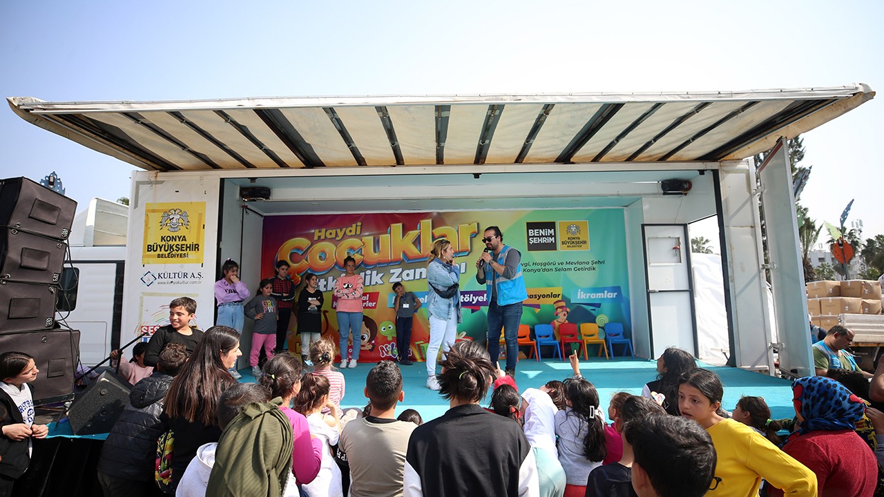Konya Büyükşehir Belediyesi Kültür ve Sosyal İşler Daire Başkanlığına bağlı ekipler, Kahramanmaraş merkezli 6 Şubat'taki depremlerden etkilenen illerde afetin çocuklar üzerindeki psikolojik etkilerini azaltmaya yönelik çalışmalarını sürdürüyor.