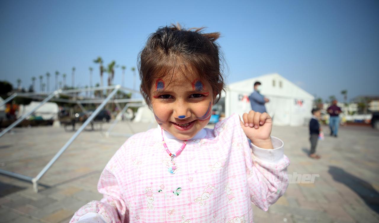 Belediyeye ait tırla gezerek Gaziantep, Malatya, Adıyaman ve Kahramanmaraş'ta çocuklarla oyunlar oynayan hediyeler veren ekip, Hatay'ın İskenderun ilçesine geldi.