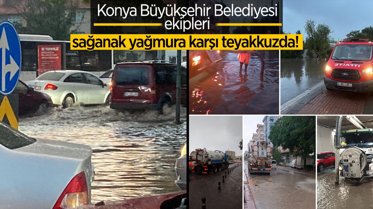 Konya'da akşam saatlerinde etkisini sürdüren sağanak yağmura karşı Konya Büyükşehir Belediye ekipleri 62 personel ve 18 araç ile sahada çalışmalarını sürdürüyor.