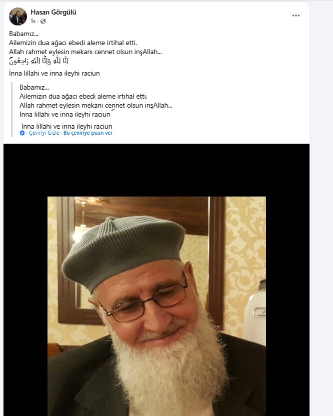 Konya Büyükşehir Belediyesi Ulaşım Dairesi Başkanı Hasan Görgülü'nün babası Tahsin Görgülü vefat etti.
