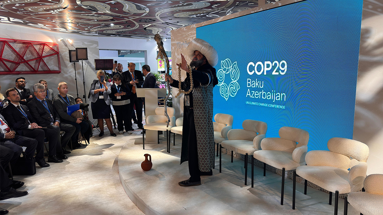 COP29 kapsamında Çevre, Şehircilik ve İklim Değişikliği Bakanlığı tarafından kurulan Türkiye pavilionunda Konya’yı ve Nasrettin Hoca’yı İngilizce olarak çeşitli hikayeler ve fıkralarla anlatan Konya Büyükşehir Belediyesi Şehir Tiyatrosu oyuncusu temsili Nasrettin Hoca, başta Türk dünyası olmak üzere dünyanın farklı ülkelerinden gelen ziyaretçilerin merakı ve yoğun ilgisiyle karşılaştı.