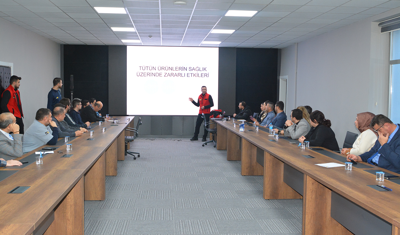 Projenin devamında birinci grup olarak belirlenen 63 personele “Temel İş Sağlığı ve Güvenliği Eğitimi” kapsamında iş yeri hekimi ve sağlık personeli tarafından sigara bırakma süreci hakkında detaylı bilgilendirme ve farkındalık eğitimi düzenlendi.