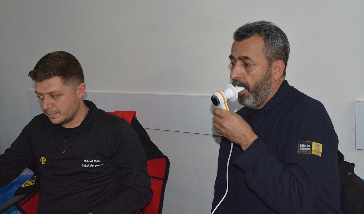Çalışanların sigarayı bırakmasına destek olmak amacıyla başlatılan örnek projede, Büyükşehir Belediyesine ait Mobil Sağlık Aracı’nda sigara kullanan gönüllü personel, detaylı şekilde muayene edildi.