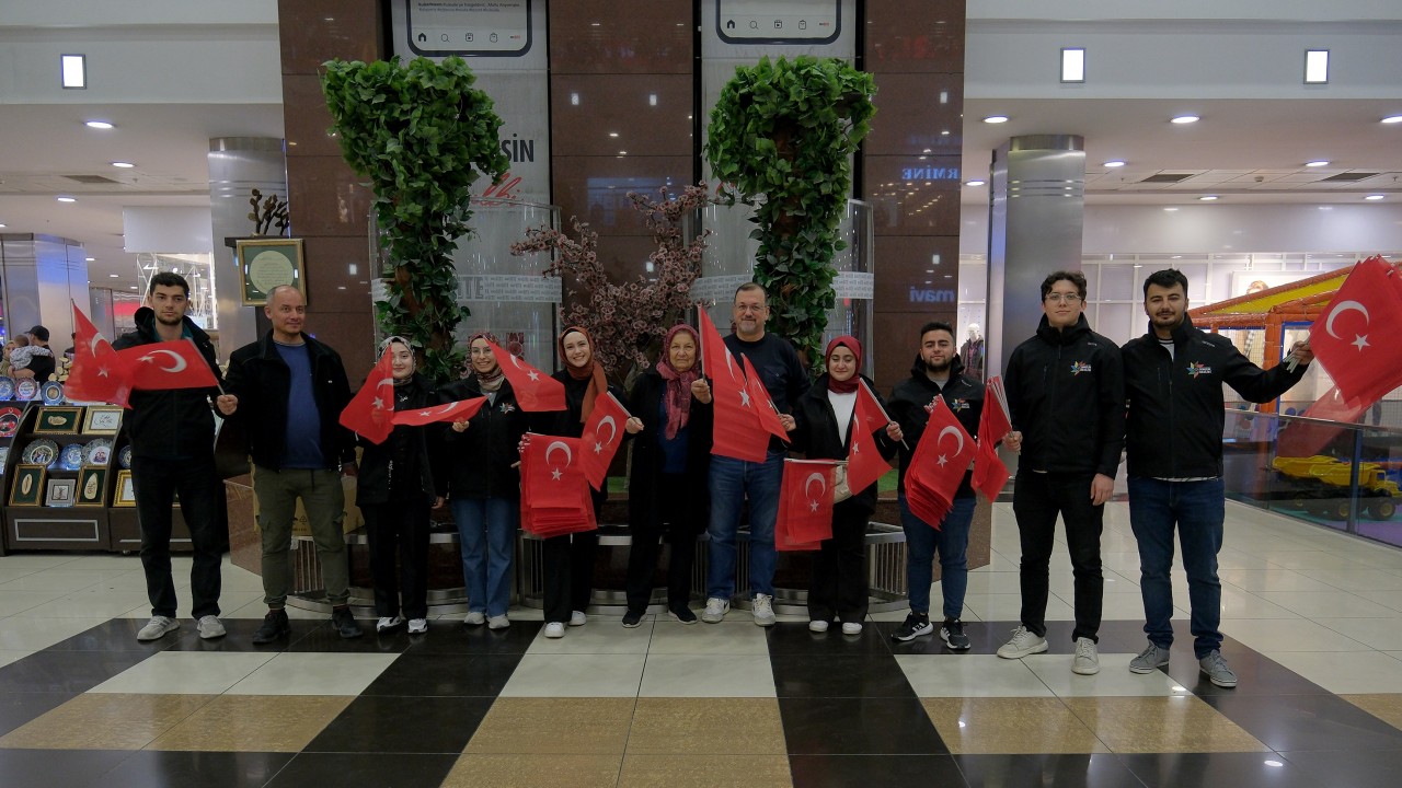 Cumhuriyetimizin temel değerlerinin genç kuşaklara hatırlatılarak milli birlik ve beraberlik vurgusunun da yapıldığı bayrak dağıtım etkinliğinde Konyalılar, bağımsızlığımızı simgeleyen bayrakları alarak, 29 Ekim Cumhuriyet Bayramı coşkusunu Gençlik Meclisi üyeleriyle birlikte yaşadı. (Veli Şengül)