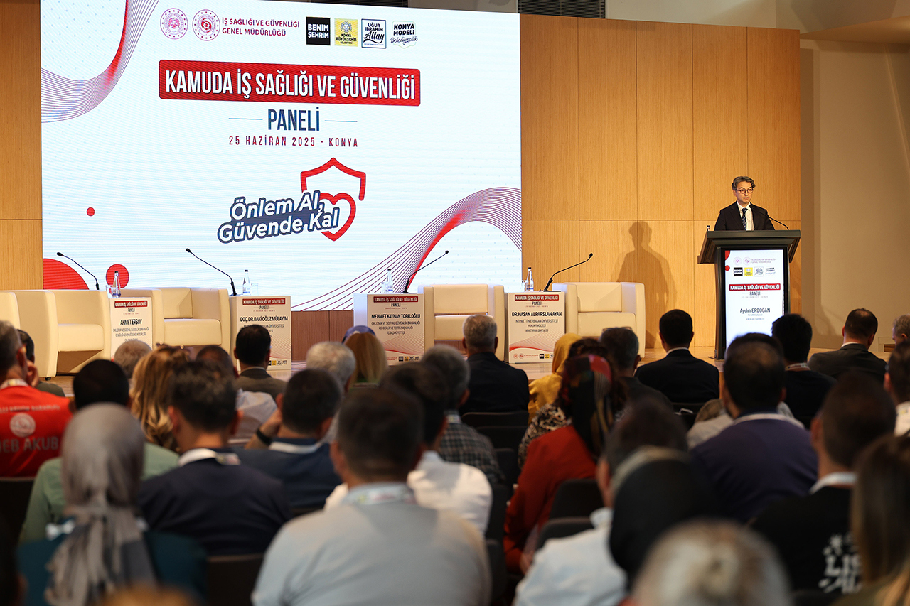 Konya Büyükşehir Belediyesi Taş Bina Kültür Sanat’ta düzenlenen panelin açılışında konuşan Çalışma ve Sosyal Güvenlik Bakanlığı İş Sağlığı ve Güvenliği Genel Müdür Yardımcısı Ömer Şahin, panelin kamuda iş sağlığı ve güvenliğinin mevcut durumunun değerlendirmenin yanı sıra geleceğe yönelik çözüm önerileri geliştirmek için de önemli bir platform olacağını ifade etti.