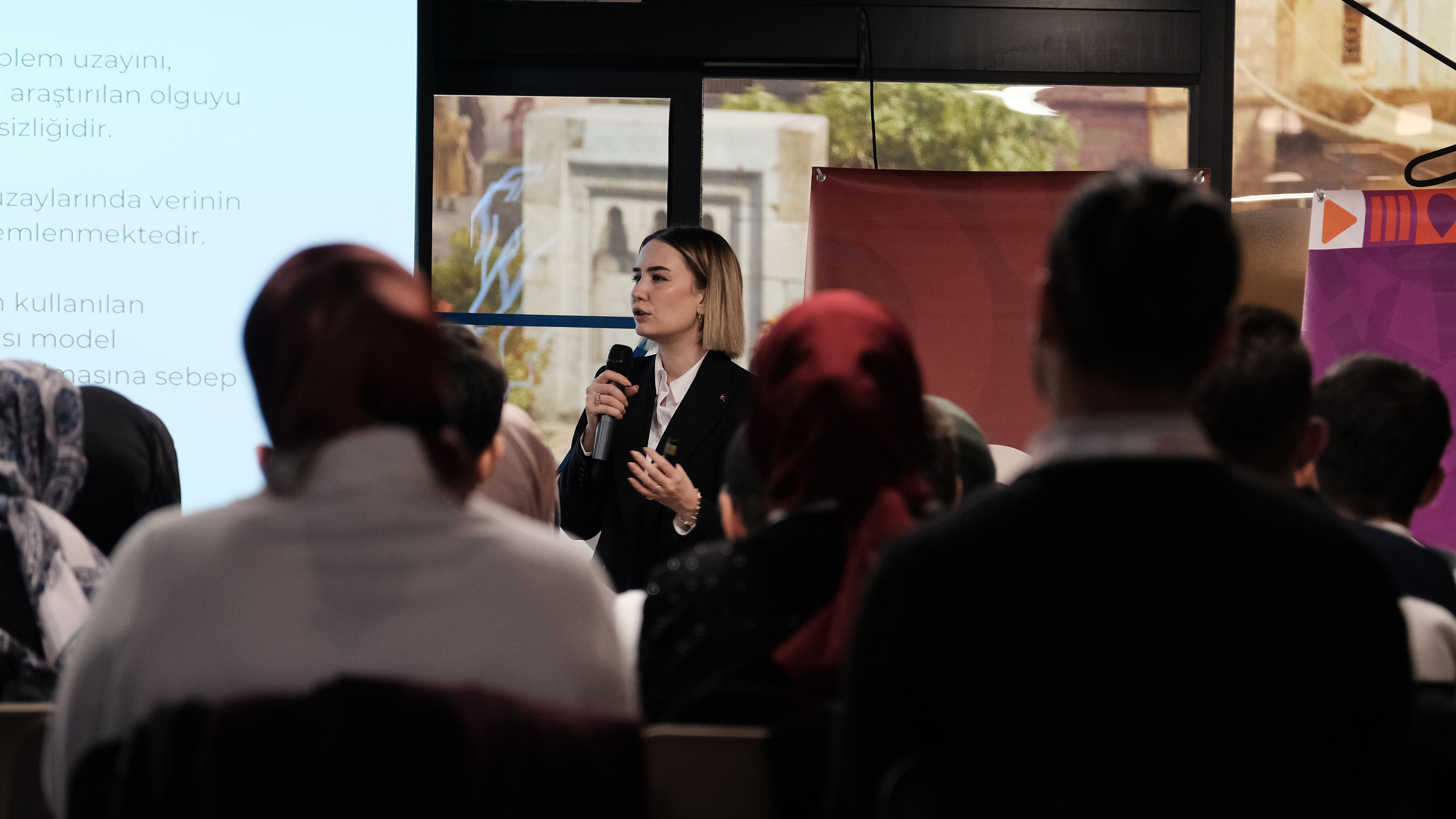 Programın ilk oturumunda Dr. Melike Palsü Kurt, “Yapay Zekâya Giriş ve Temel Kavramlar” başlıklı eğitiminde yapay zekânın tarihçesi, temel bileşenleri ve kullanım alanları üzerine kapsamlı bir sunum yaptı. Veri ön işleme süreçleri, makine öğrenmesi, derin öğrenme ve doğal dil işleme gibi kavramların ele alındığı bu oturumda, yapay zekâ teknolojilerinin hayatımıza nasıl entegre olduğu üzerine önemli bilgiler paylaşıldı.