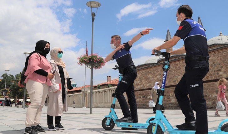 Konya Büyükşehir Belediyesi Zabıta ekipleri vatandaşlara daha hızlı hizmet verebilmek, denetimlerini hızlı bir şekilde yapabilmek için şehir merkezinde elektrikli scooter ile hizmet vermeye başladı.