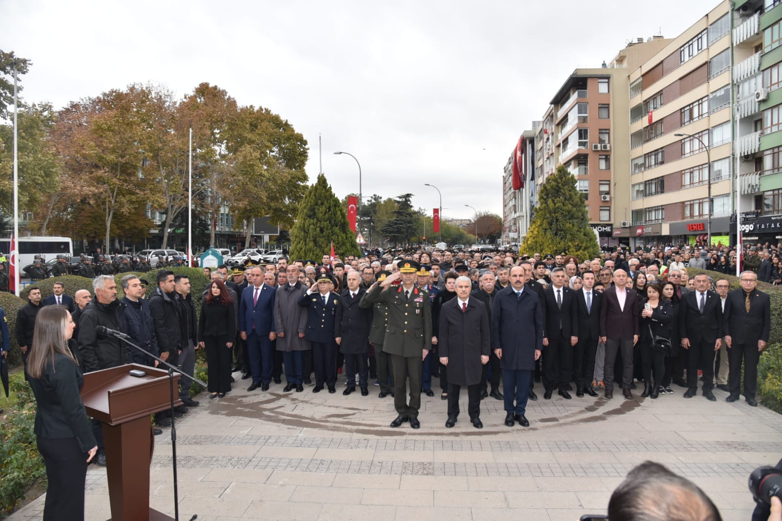 İstiklâl Marşı'nın söylenmesi ile birlikte bayraklar yarıya indirildi.