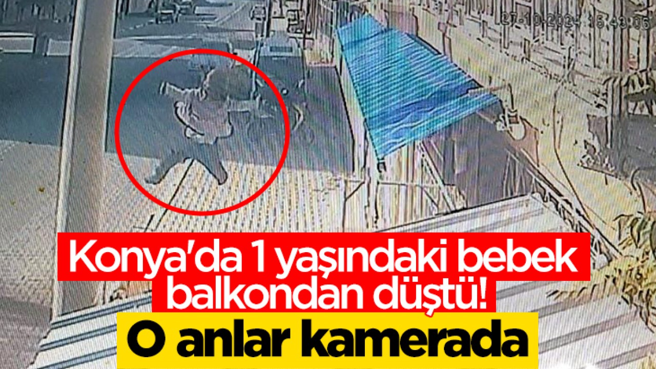 Konya'nın Kulu ilçesinde 1 yaşındaki bebek, üçüncü kattaki evlerinin balkonundan kaldırıma düşerek yaralandı. Düşme anı ise iş yerinin güvenlik kamerasına saniye saniye yansıdı.