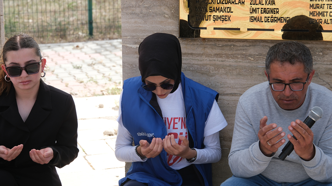 Gönüllü gençler, Kur'an-ı Kerim okuyarak Yasin-i Şerif ve dualarla kaybedilen arkadaşlarını andı.