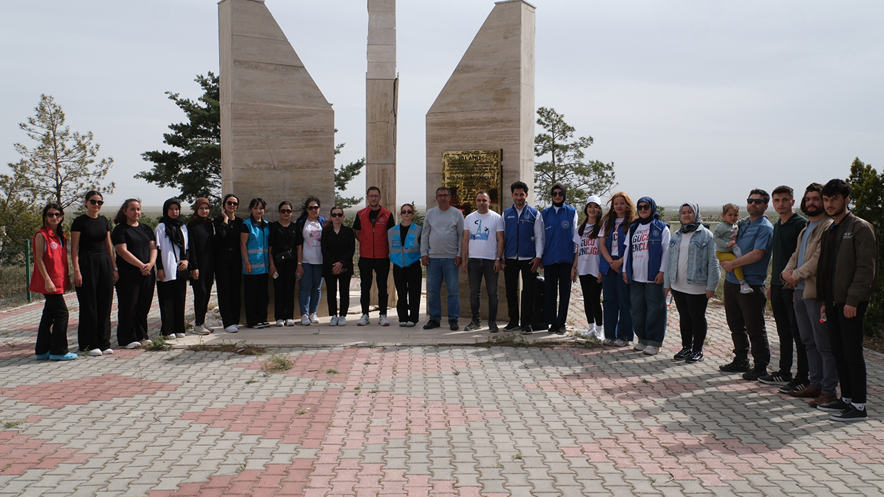 Ziyaretin ardından gönüllü gençler, anıt önünde toplu hatıra fotoğrafı çektirdi.