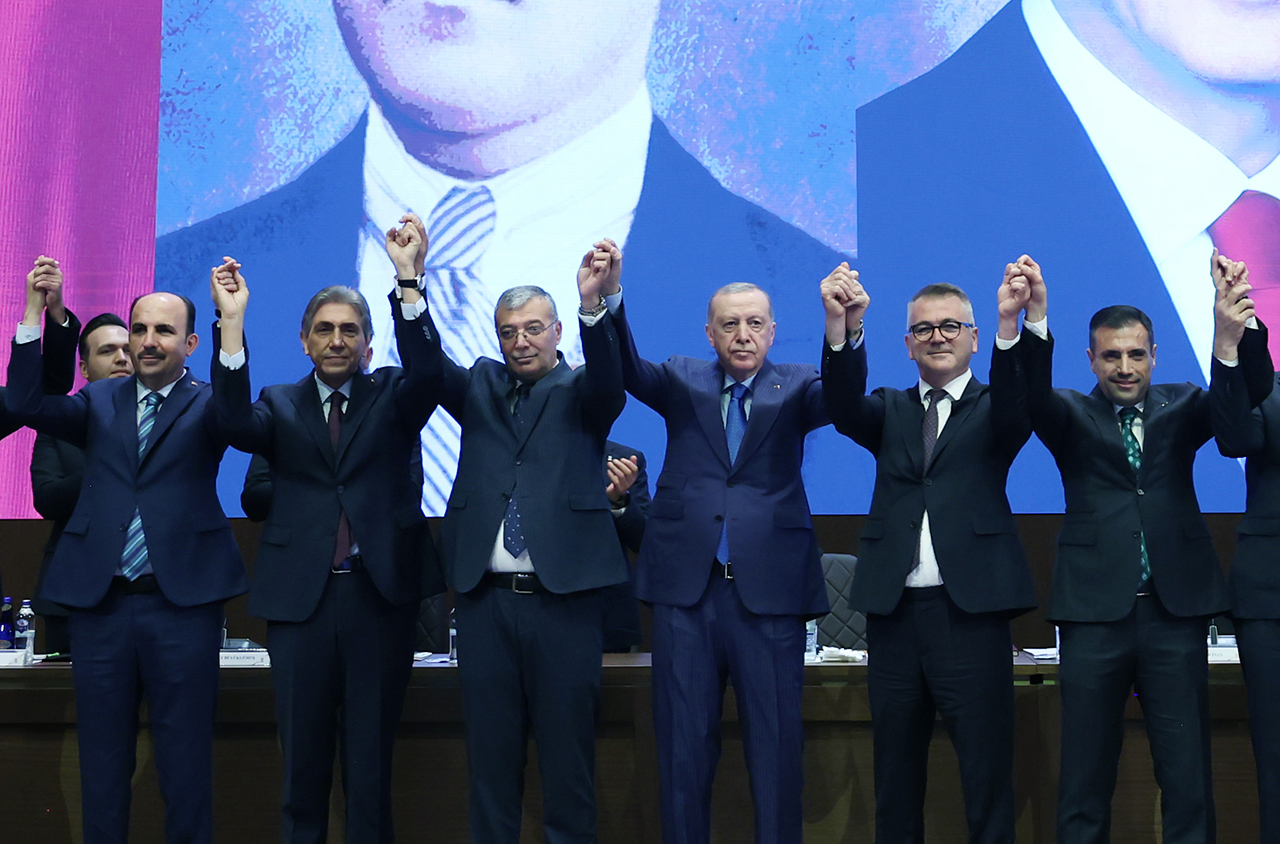 Cumhurbaşkanı ve AK Parti Genel Başkanı Recep Tayyip Erdoğan, MKYK toplantısı öncesinde partisine katılan Seydişehir Belediye Başkanı Hasan Ustaoğlu ve Emirgazi Belediye Başkanı Mesut Mertcan AK'a rozetlerini taktı.