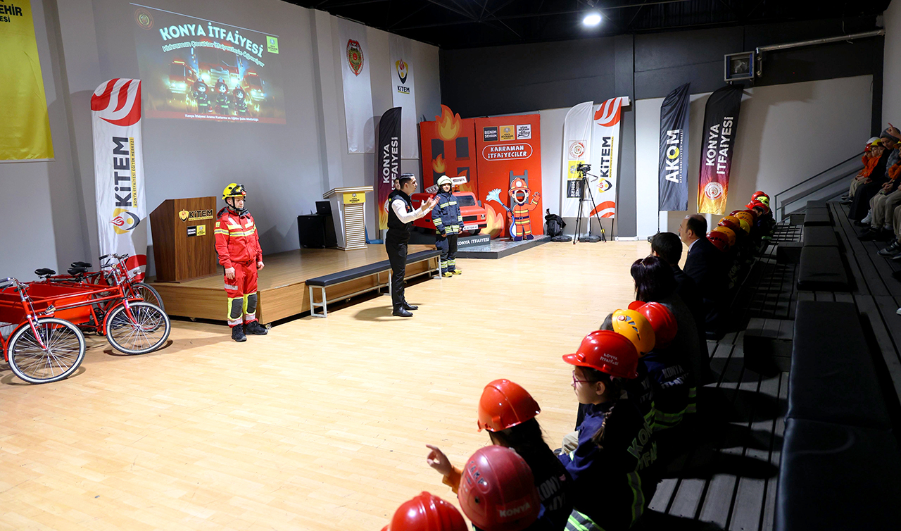 Konya Büyükşehir Belediyesi’nin İl Milli Eğitim Müdürlüğü ile birlikte 31 ilçede yürüttüğü “Kahraman Çocuklar İtfaiyecilerle Öğreniyor Projesi” ile 2021 yılından bu yana kurumsal bir eğitim programıyla ilkokul 1. sınıf öğrencilerine afet bilinci, güvenli yaşam kültürü ve temel yangın farkındalığı kazandırılıyor.