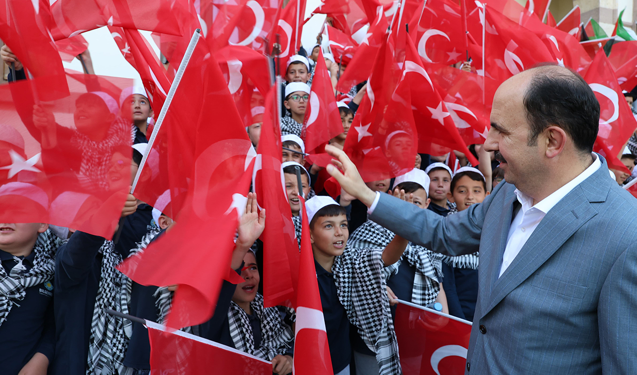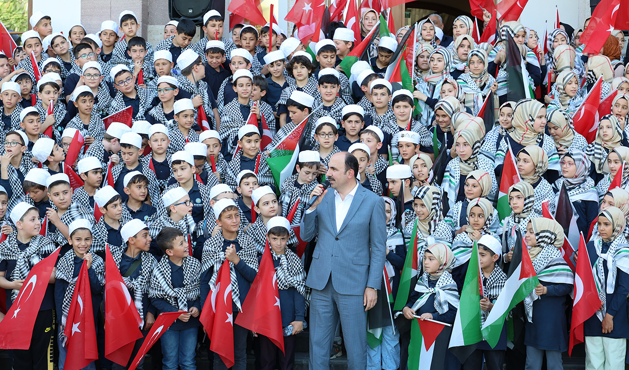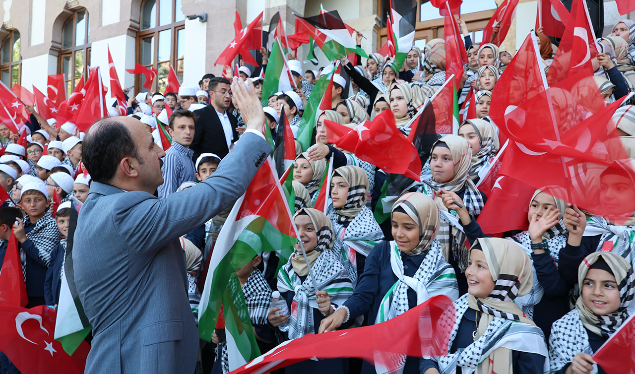 Başkan Altay, çocukların kefiyeleriyle, Filistin ve Türk bayraklarıyla bir taraftan da dünyaya mesaj verdiğinin altını çizerek, “Biz burada bu imkanları kullanırken maalesef ki İsrail zulmü altında inleyen Gazzeli çocukları da yad ediyoruz, hatırlıyoruz. ‘İnşallah onlar da böyle güzel programlara bir an önce kavuşsunlar’ diye temenni ediyoruz. En büyük ödül hafız olmak. Onu da başaracağınıza ben inanıyorum. Kıymetli ailelere teşekkür ediyorum. Böyle zor, zahmetli bir yolculuğa başlıyorsunuz ama inşallah bu çocuklar hepimize şefaatçi olacak” diye konuştu.