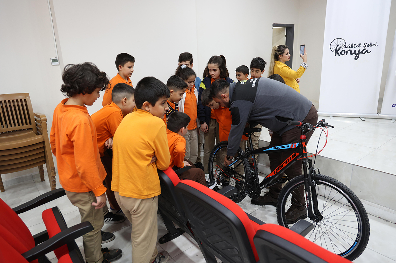 Konya Büyükşehir Belediyesi, anaokulu ve ilkokullarda öğrencilerin bisiklet konusunda daha fazla bilinçlenmesi ve farkındalık kazanması amacıyla çeşitli etkinlikler yürütüyor.