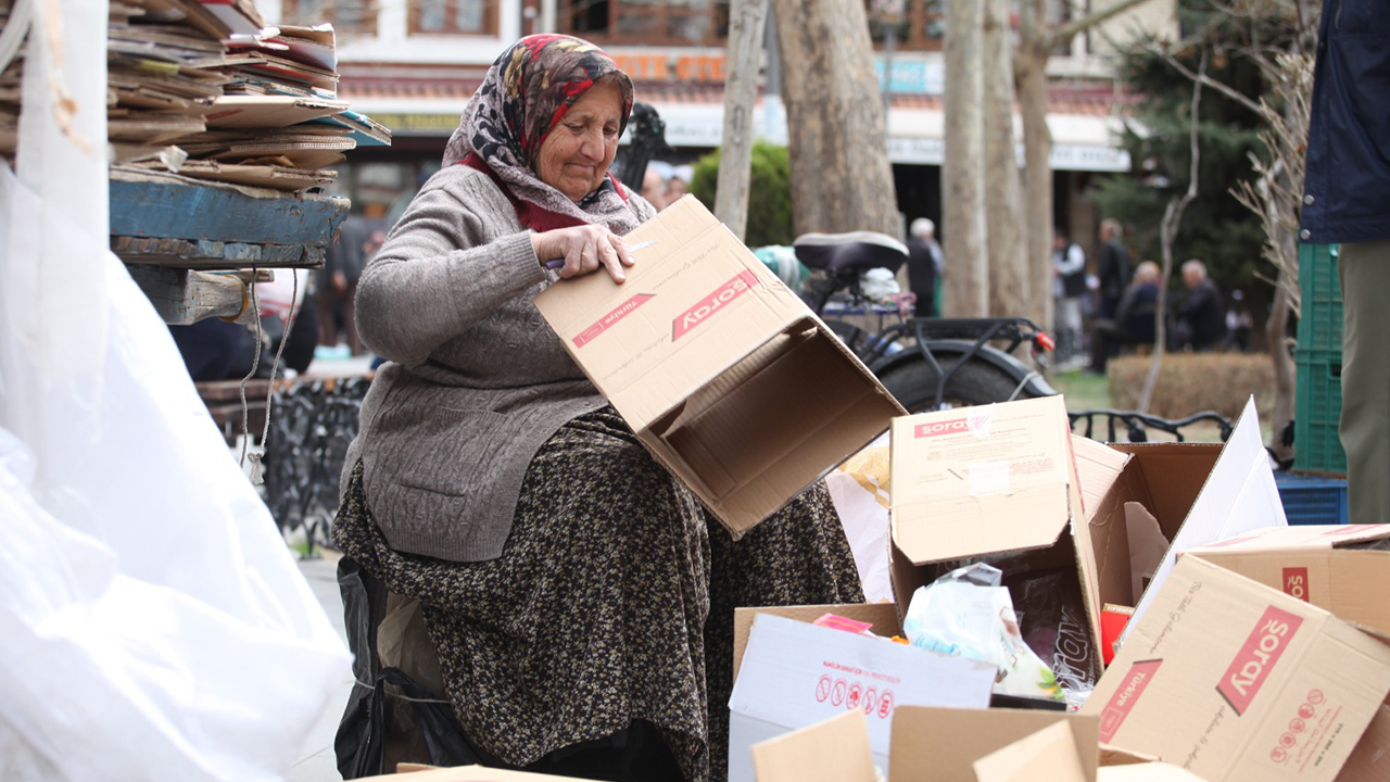 Servet Döndü, 35-40 yıldır karton topladığını belirterek, "Çocuklarımı buradan kazandığım ekmekle büyüttüm. 3 çocuğum var, 3’ü de bununla büyüdü. Şimdi de kızımın çocukları benimle, babaları yok, onlara bakıyorum. Sadece karton topluyorum, bundan geçimimi sağlıyorum. Allah’a şükürler olsun, devlet yaşlılık maaşı veriyor. Ben de okuma yazma bilmediğimden kimseye güvenemiyorum. Bu işten başka da bir şey yapamıyorum. Beni tanıyanlar yardım ederse ediyor, etmezlerse yok. 3 çocuğa bakıyorum. Kolay değil hiçbir şey. Yardım edenler bayram şekeri aldı. Çocuklara götüreceğim, sevinecekler" şeklinde konuştu.
