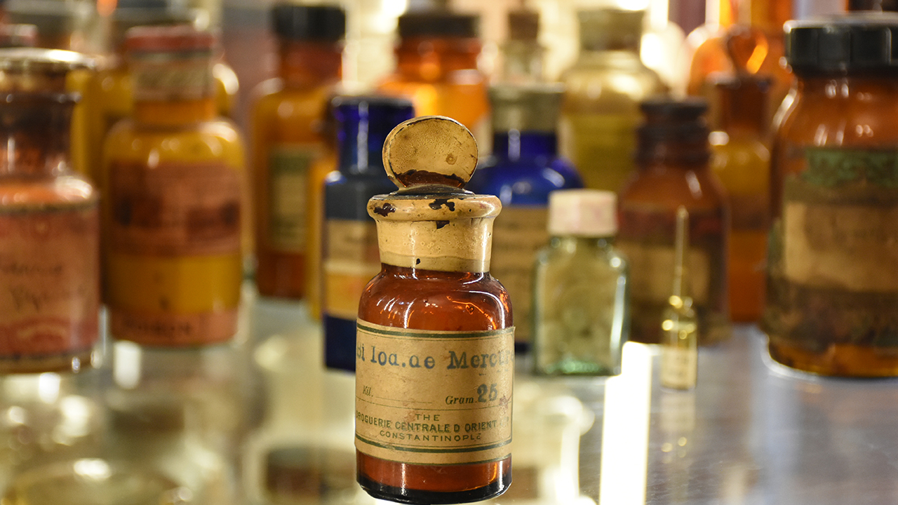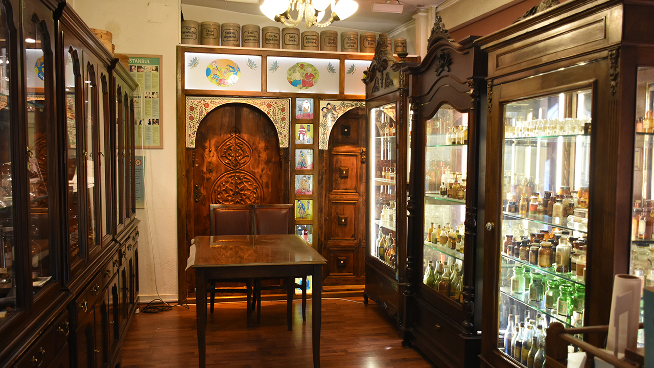 Konya'da eczacı Ahmet Nezihi Pekcan, mesleğiyle ilgili oluşturduğu binlerce parçadan oluşan koleksiyonunu iş yerinde sergiliyor.