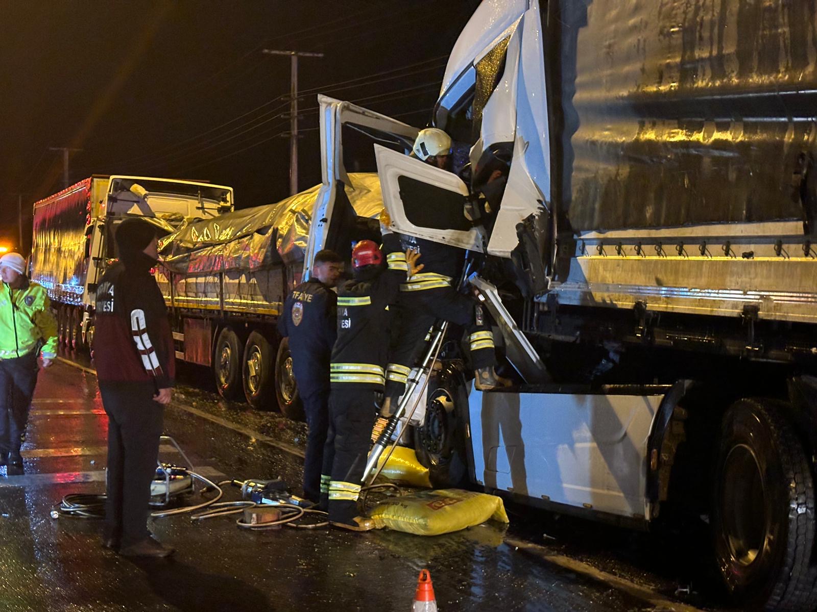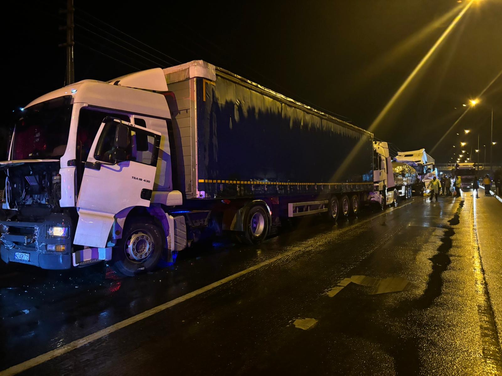 Öte yandan kaza nedeniyle bir süre trafikte aksama yaşandı. Kazaya karışan tırların kaldırılmasının ardından trafik normale döndü.