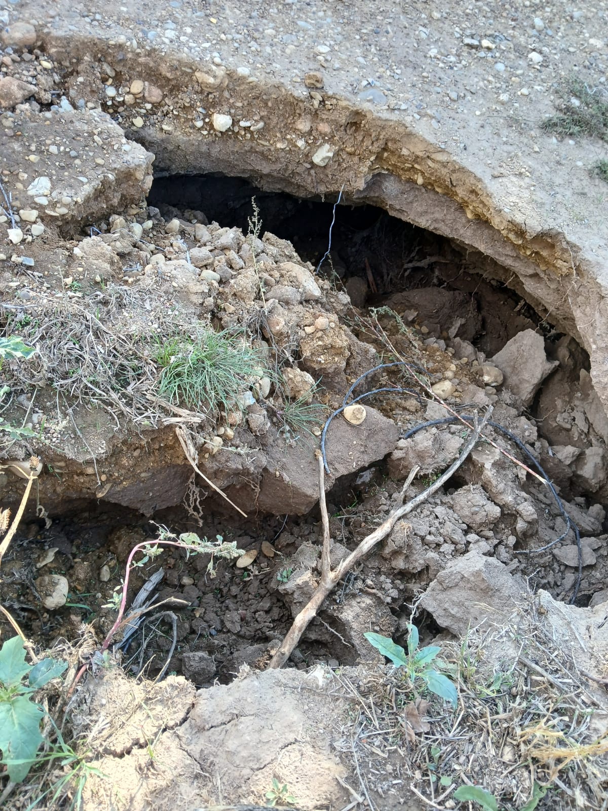 Zaten fotoğraf her şeyi anlatıyor, obruk direkt tarlanın dibinde. Siz aşağıdan suyu çekerseniz böyle göçer. Sebep-sonuç.