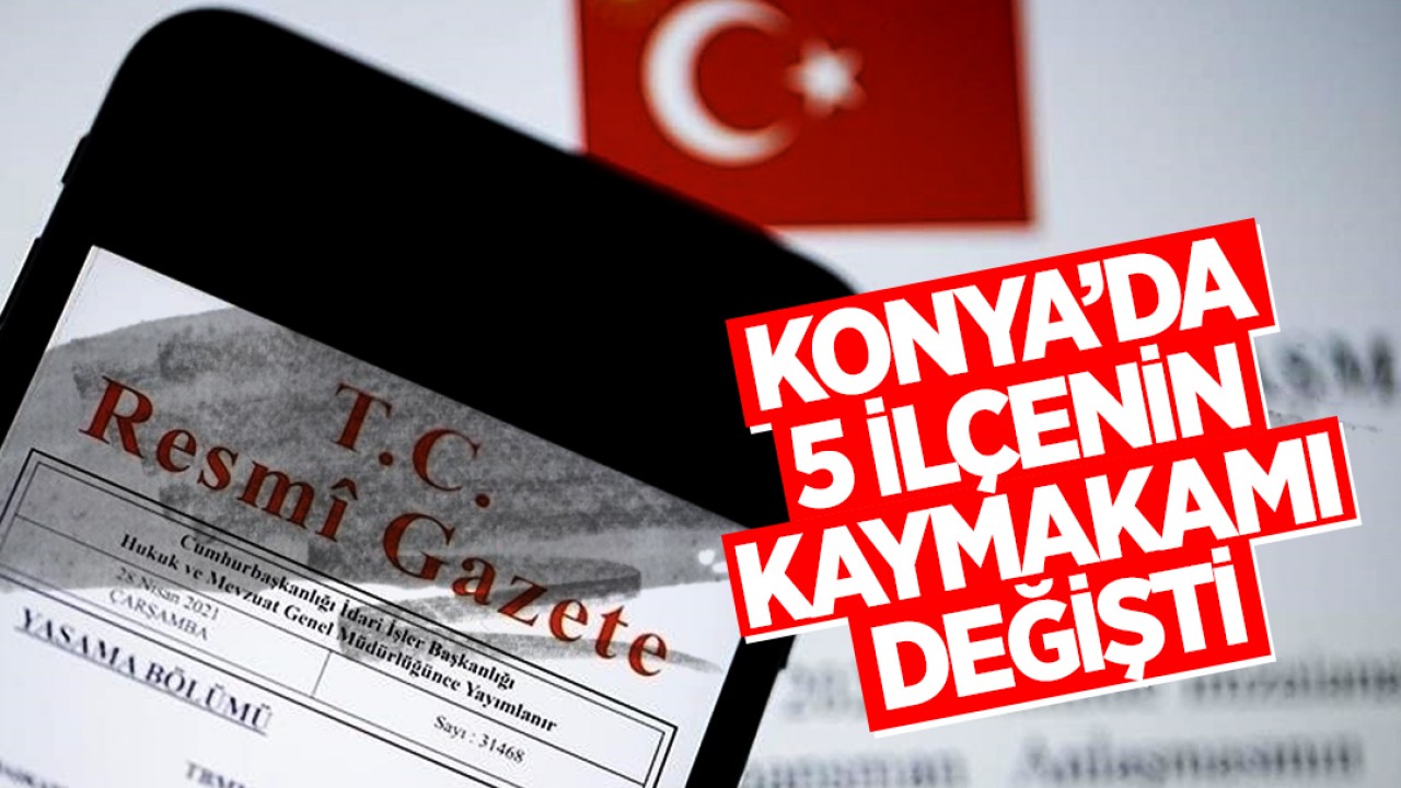 Cumhurbaşkanı Recep Tayyip Erdoğan'ın imzasıyla Resmi Gazete'de yeni atama kararları yayımlandı. Buna göre Konya’nın 5 ilçesine yeni kaymakam atandı.
